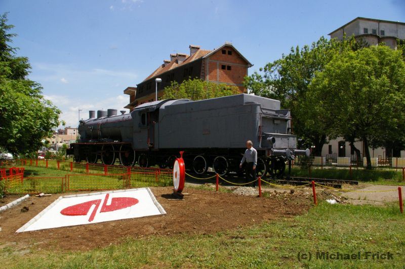 vor dem Bahnhof Fushë